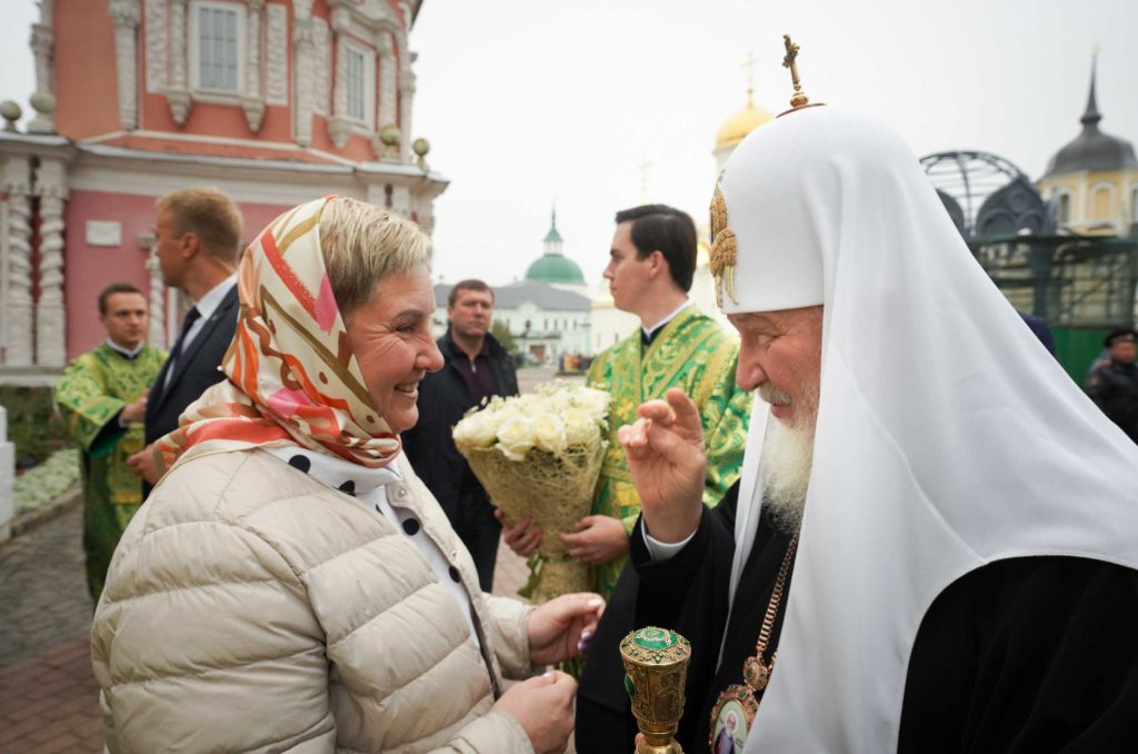 В Патриарших покоях лавры состоялась встреча Святейшего Патриарха Кирилла с супругой Президента Республики Сербия Тамарой Вучич.