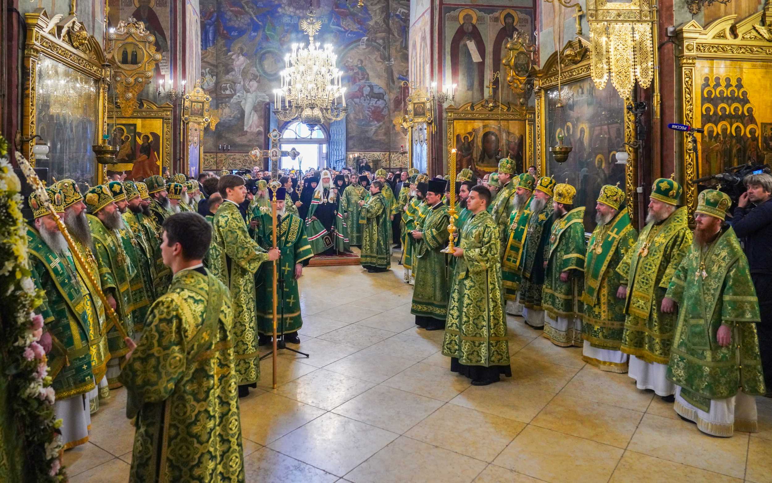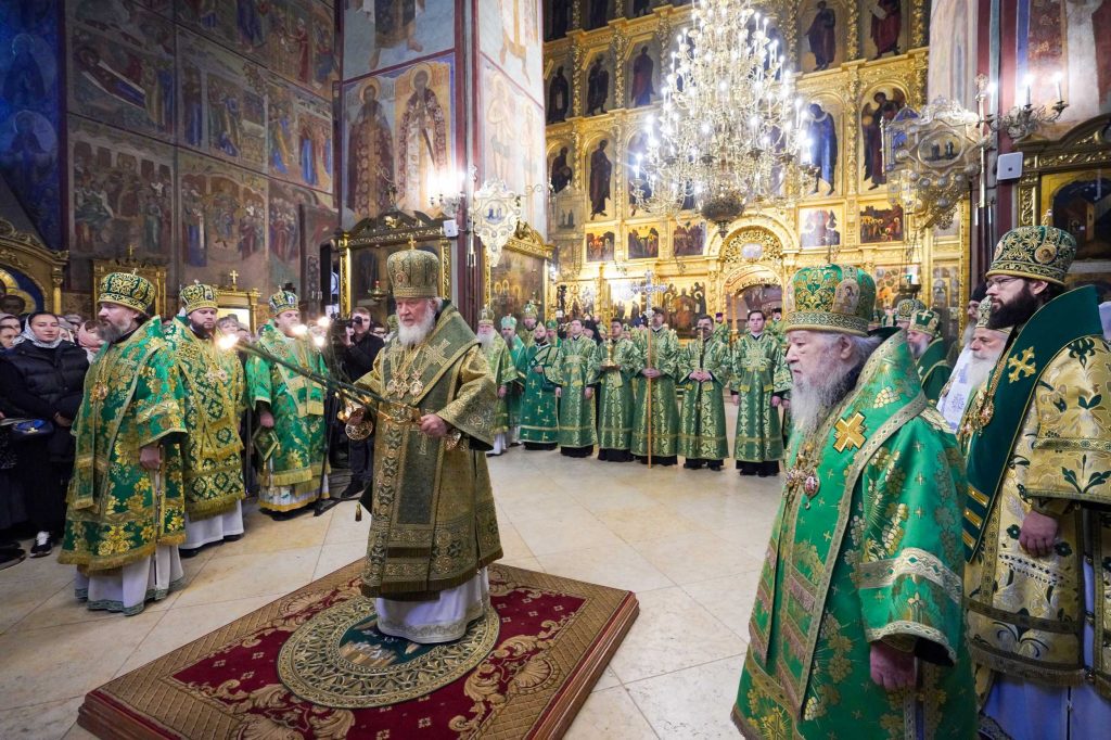 На сугубой ектении были вознесены особые прошения, Предстоятель Русской Церкви прочитал молитву о Святой Руси.