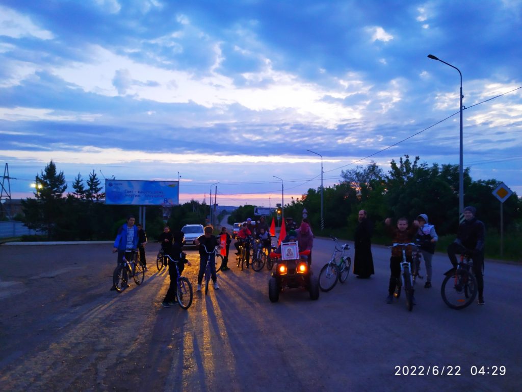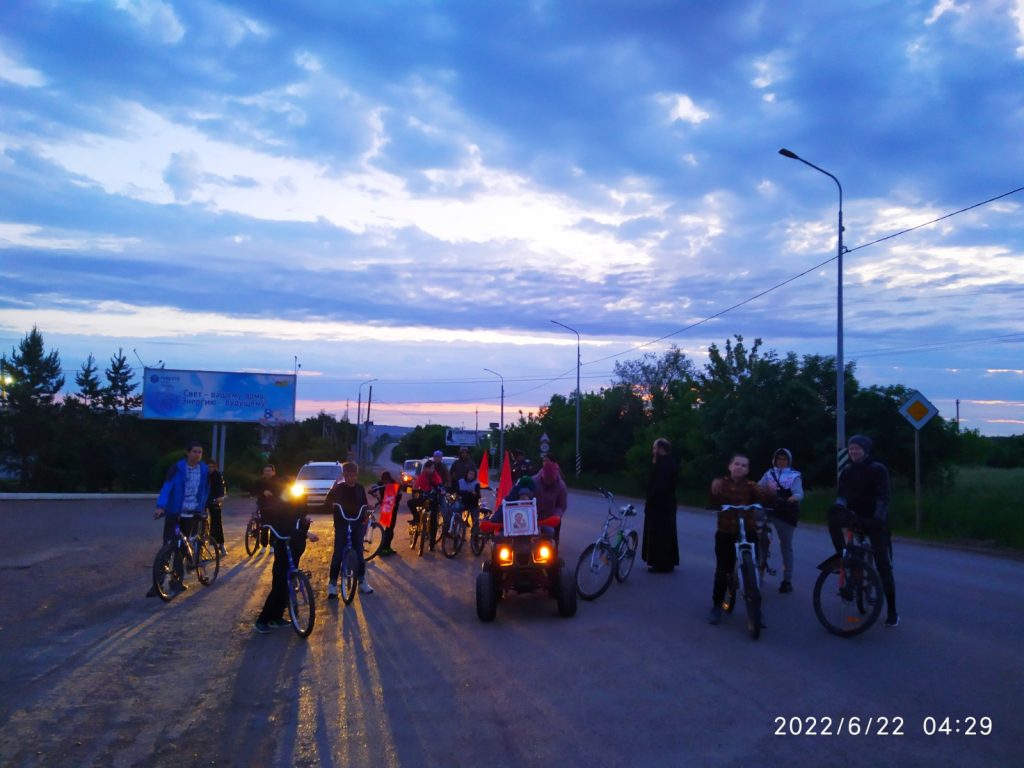 Бугуруслан. 22 июня 2022 года. По благословению епископа Бузулукского и Сорочинского Алексия ровно в 4 часа утра стартовал велопробег посвящённый «Дню памяти и скорби».