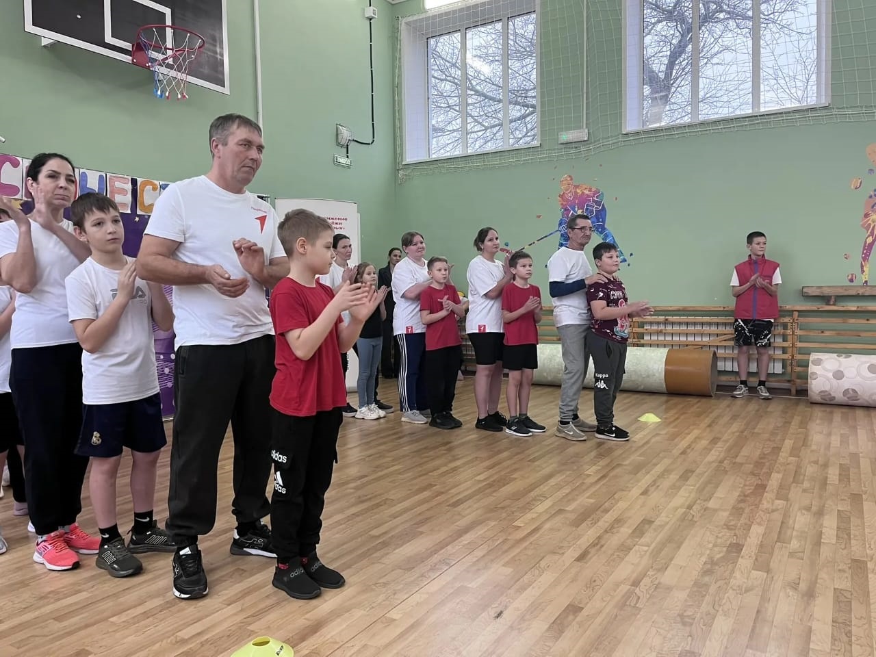 Перед началом работы комиссии руководство сельской школы провело соревнования «Веселые старты», где совместно с детьми в зале выступали родители.
