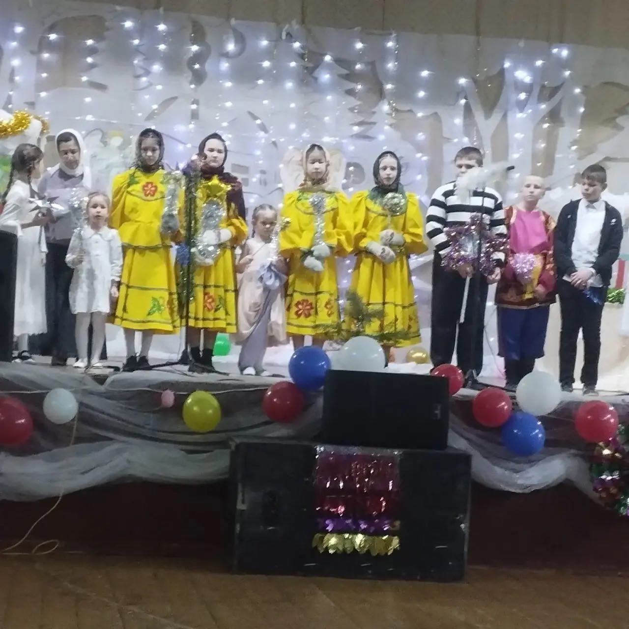 Утром 7 января ребята отправились поздравлять с праздником жителей села Красного, а 8 января выступали на праздничном утреннике.