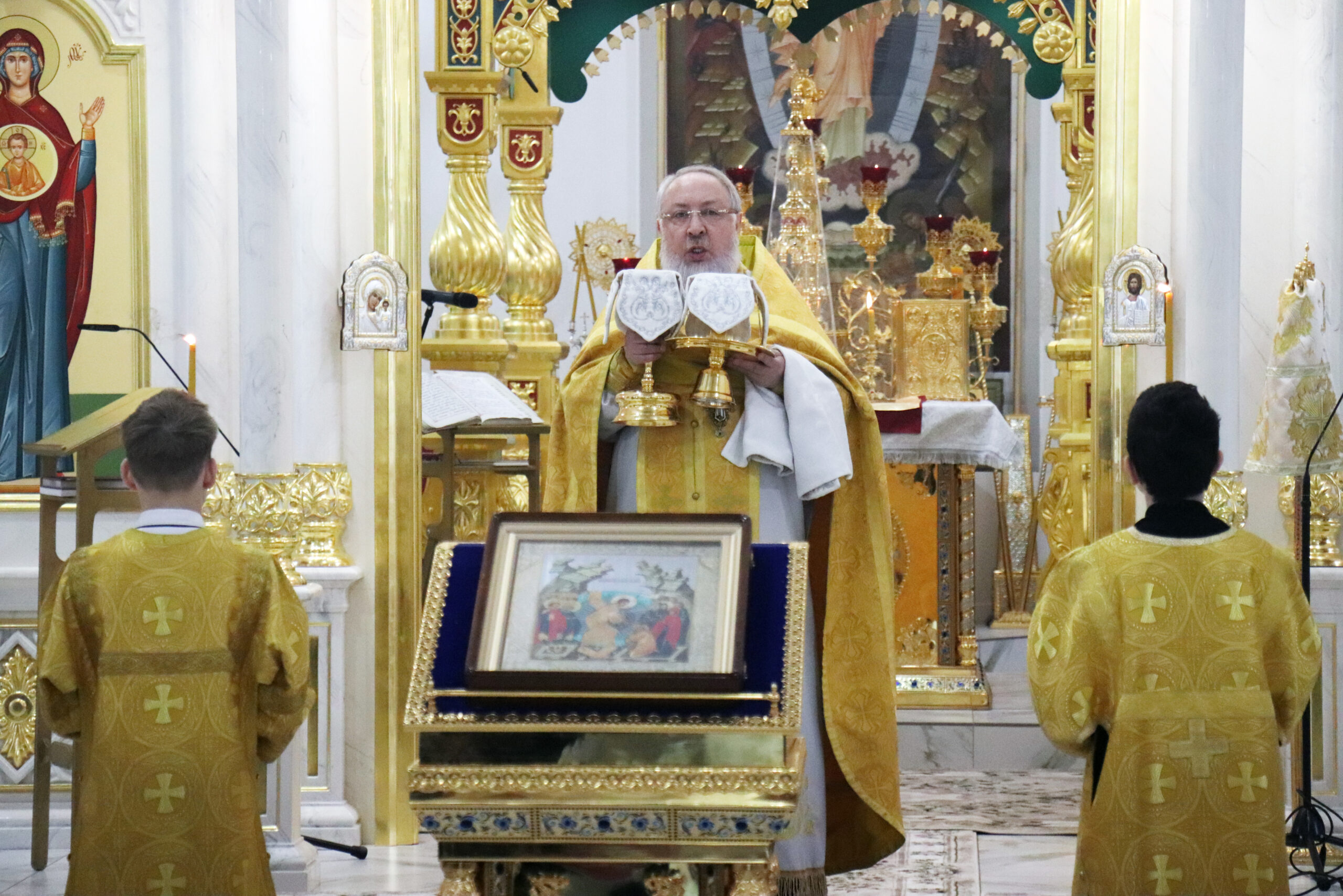 Бузулук. 2 марта 2025 года, в Неделю сыропустную, воспоминание Адамова изгнания и прощеное воскресенье, архимандрит Ефрем (Матынцев), в сослужении иерея Михаила Цапяк, иерея Вадима Зотова и иерея Анатолия Марченкова, совершил Божественную литургию в Свято-Троицком кафедральном соборе.