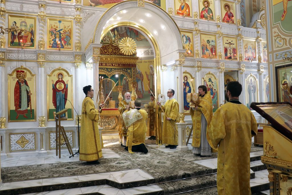 Богослужебные песнопения исполнил хор собора под управлением Наталии Задориной.