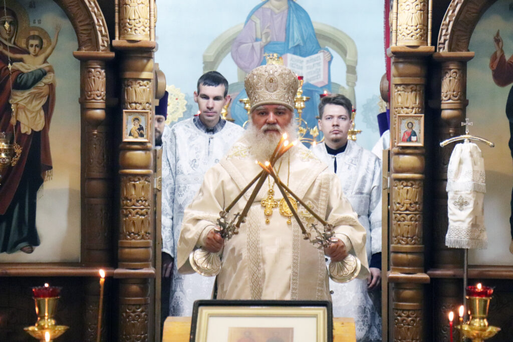 Бузулук. 13 ноября 2023 года вечером, на кануне памяти бессребреников и чудотворцев Космы и Дамиана Асийских, и матери их прп. Феодотии (III), епископ Бузулукский и Сорочинский Алексий совершил всенощное бдение в Преображенском храме Свято-Троицкого кафедрального собора.