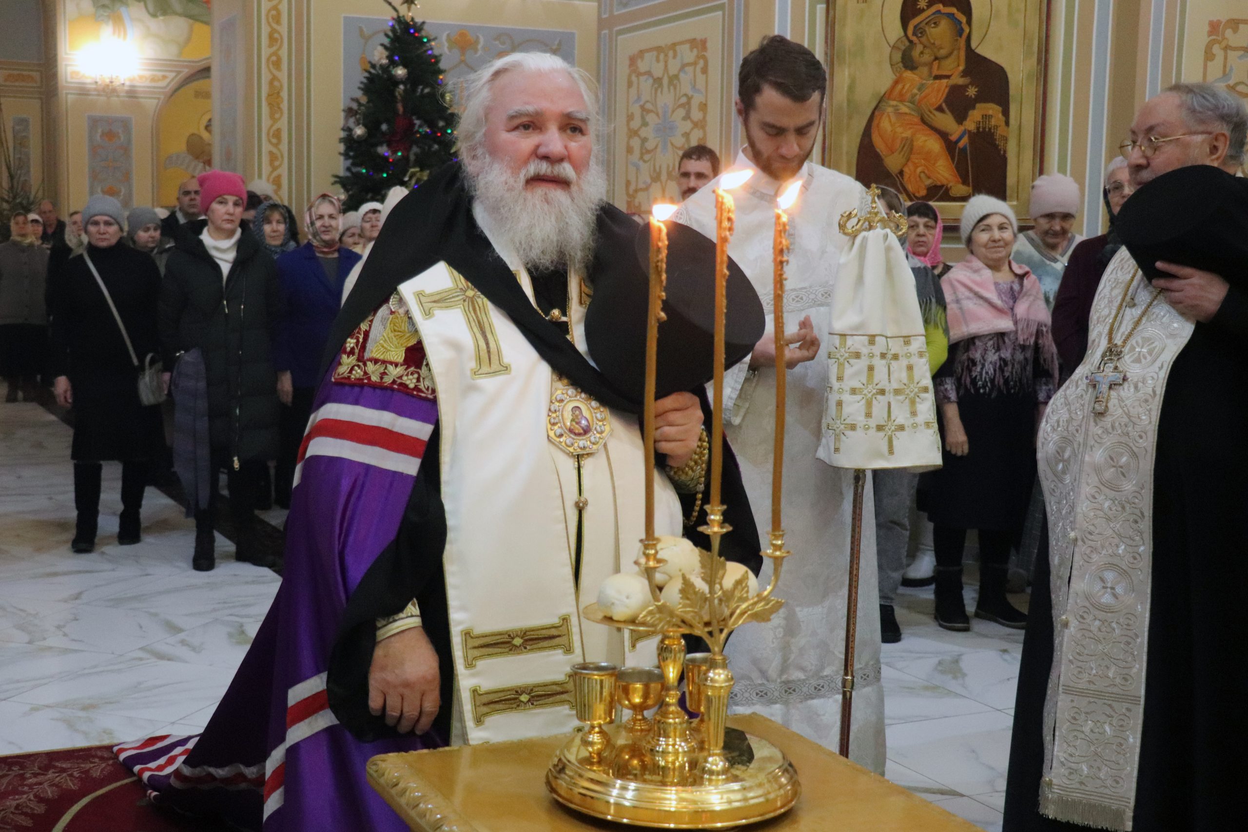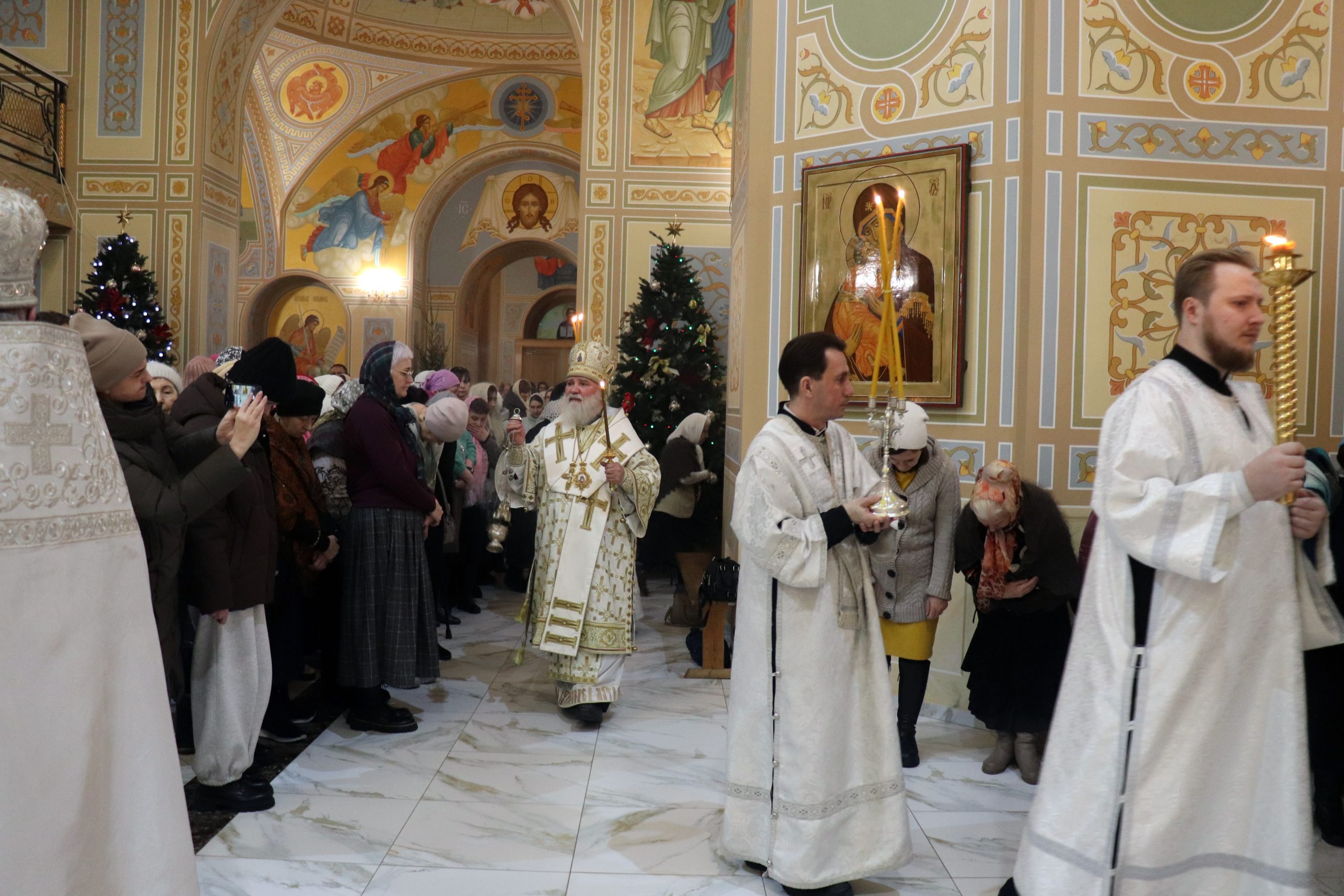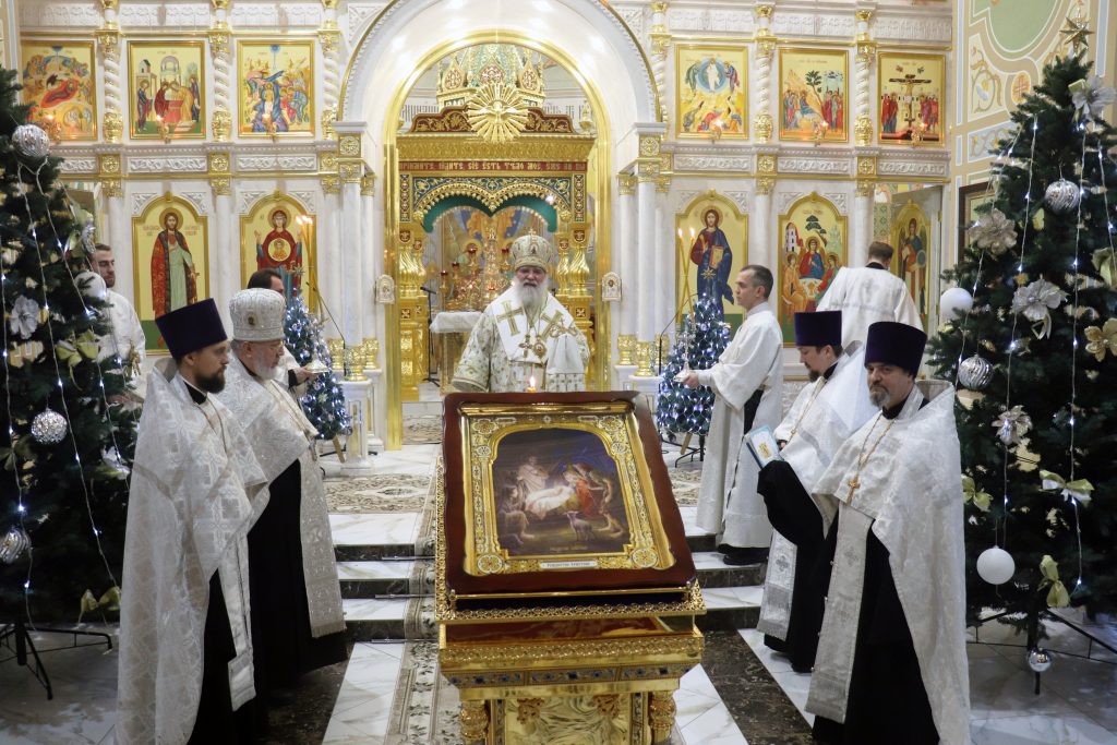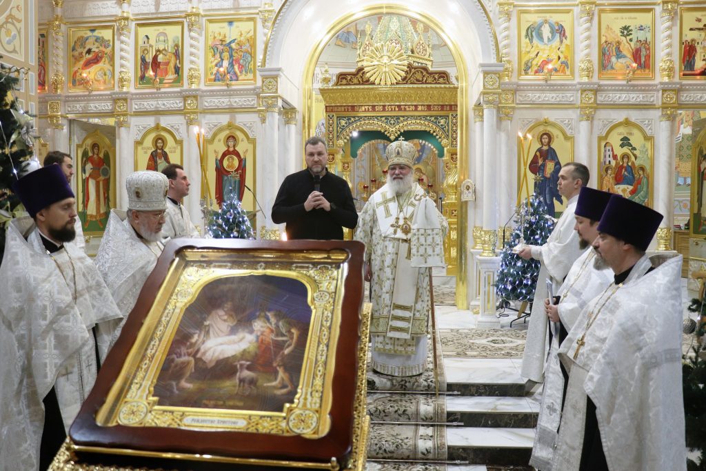 После богослужения Владыка Алексий обратился к прихожанам с архипастырским словом, отметив, что каждый человек принимает Рождество Христово в силу своего духовного возраста, ибо невозможно всецело и полностью понять, принять и разуметь эту тайну Божию. Сам Бог пришёл во плоти, чтобы спасти нас!