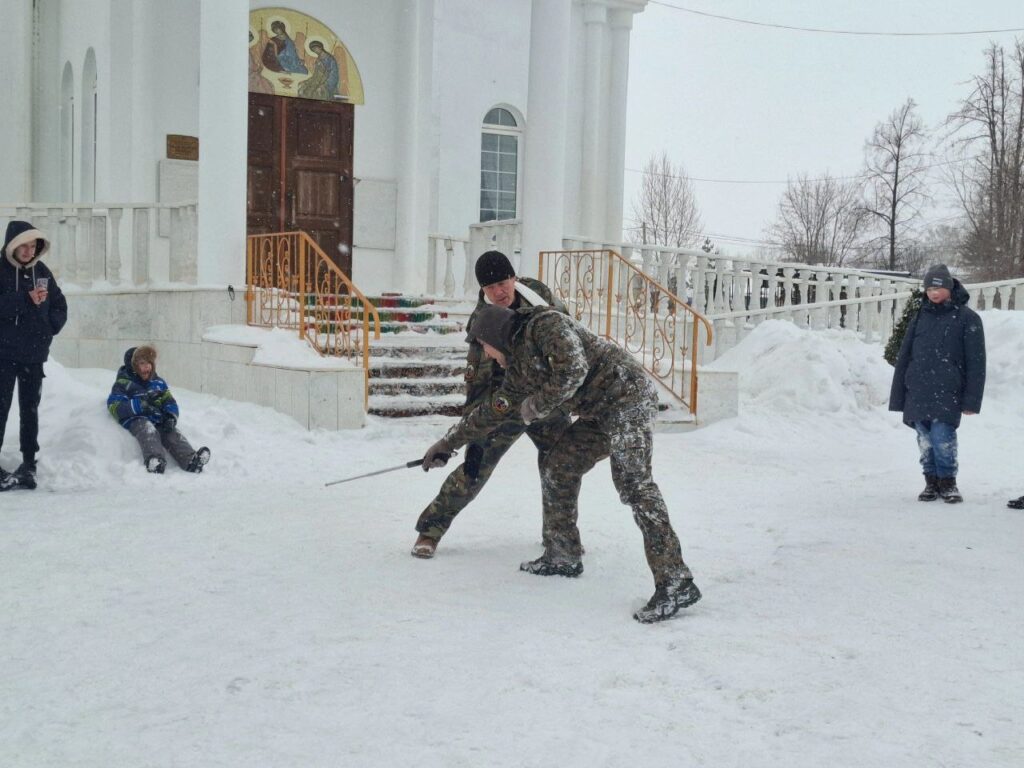 Различные игры, конкурсы, загадки, захват флага на снежной горе, бросание валенок, демонстрация приемов рукопашных боев, перетягивание каната – все и не перечислить! Смех, восторженные возгласы, аплодисменты победителям в соревнованиях не смолкали.