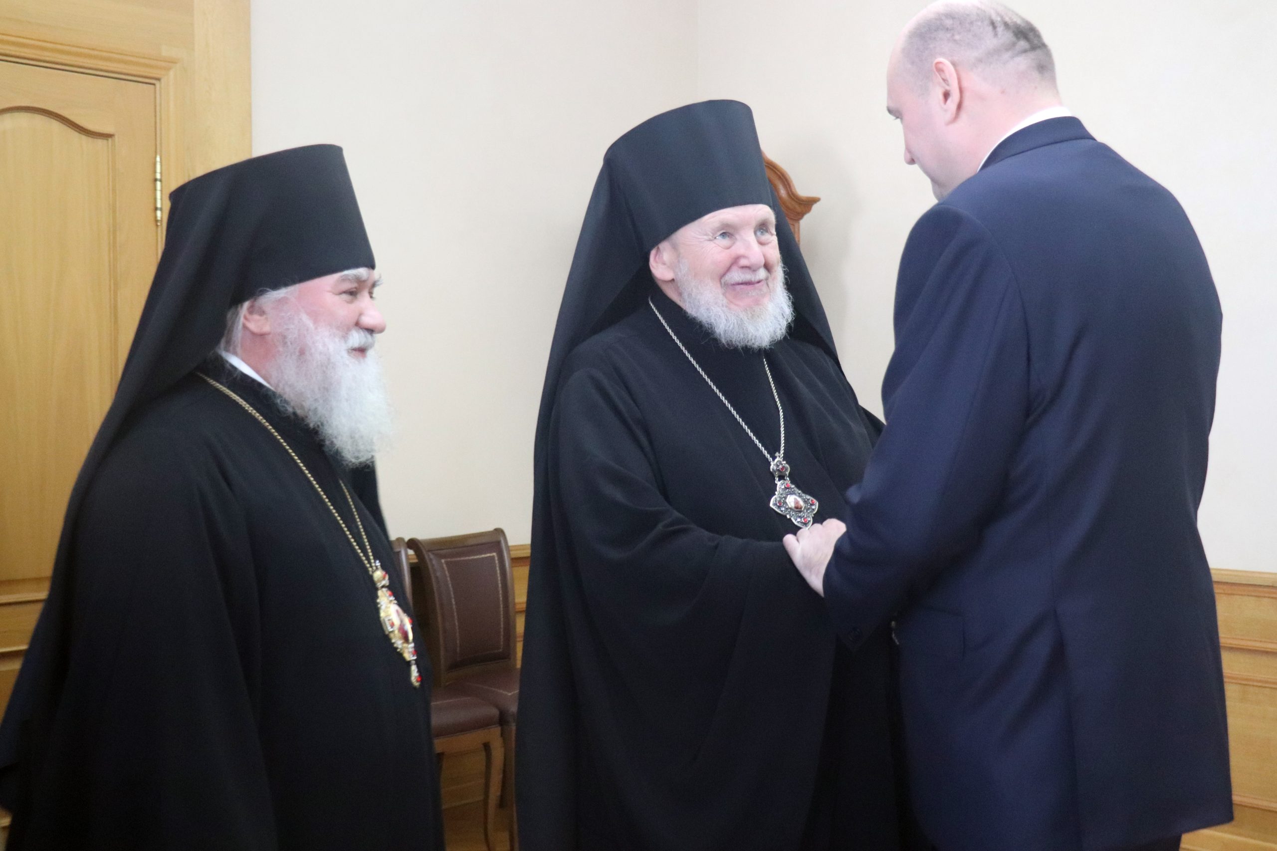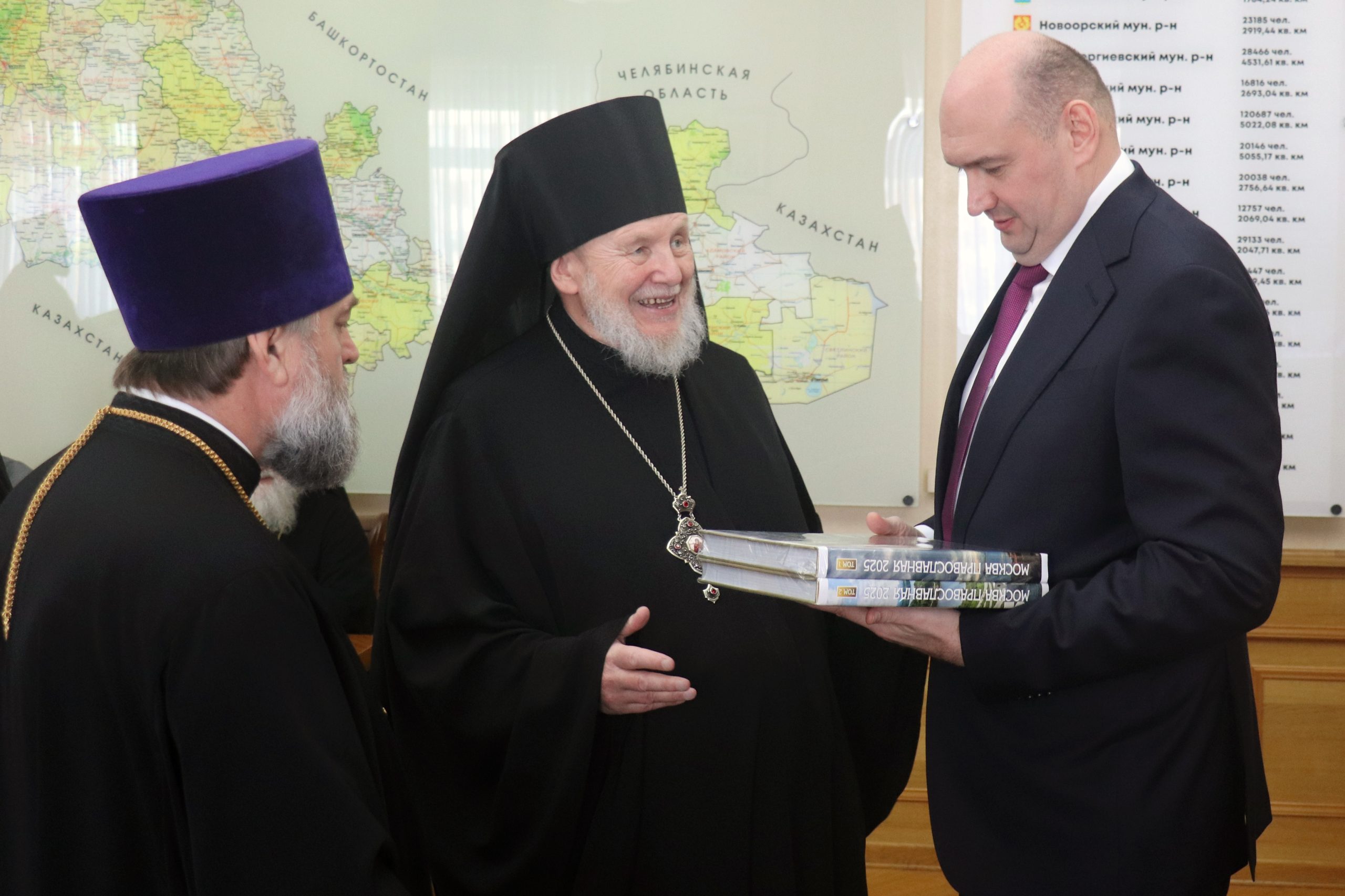 Оренбург. 21 октября 2025 года главный редактор Издательства Московской Патриархии епископ Балашихинский и Орехово-Зуевский Николай и епископ Бузулукский и Сорочинский Алексий провели рабочую встречу с губернатором Оренбургской области Евгением Солнцевым.