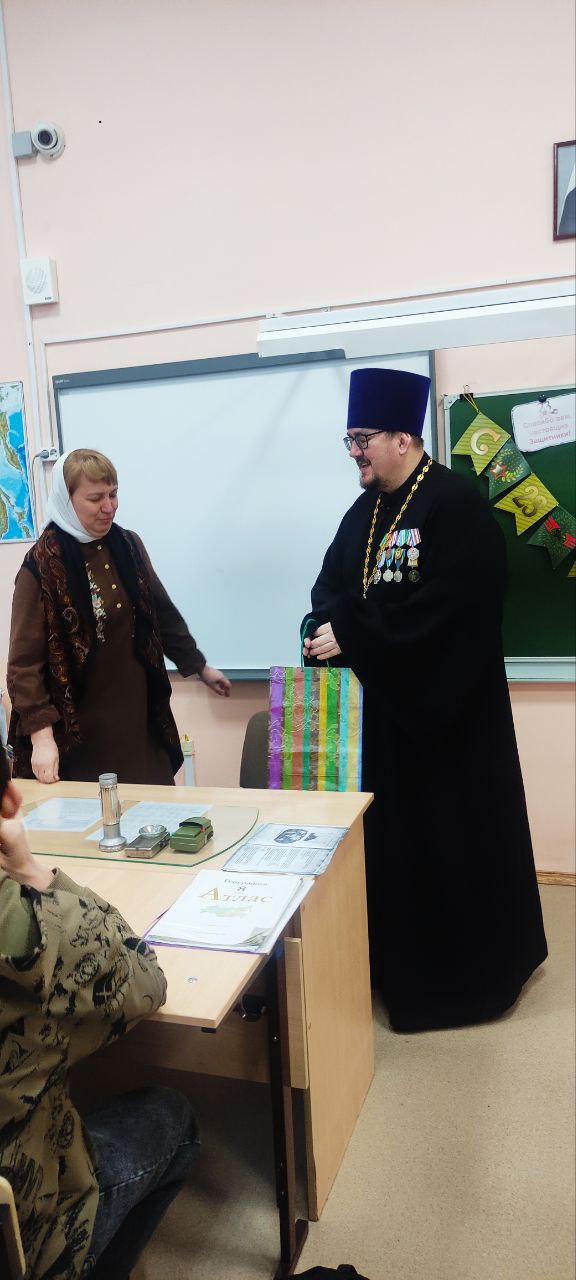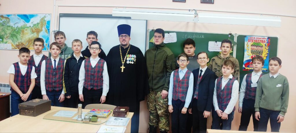 Бузулук. 21 февраля 2025 года, накануне Дня Защитника Отечества, учащие и учащиеся встретились с благочинным Бузулукского района, настоятелем храма святых первоверховных апостолов Петра и Павла, иереем Александром Липатовым.