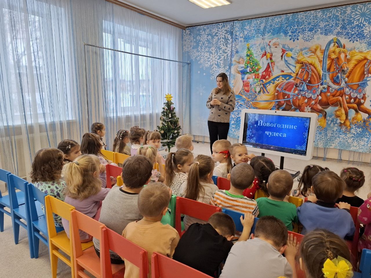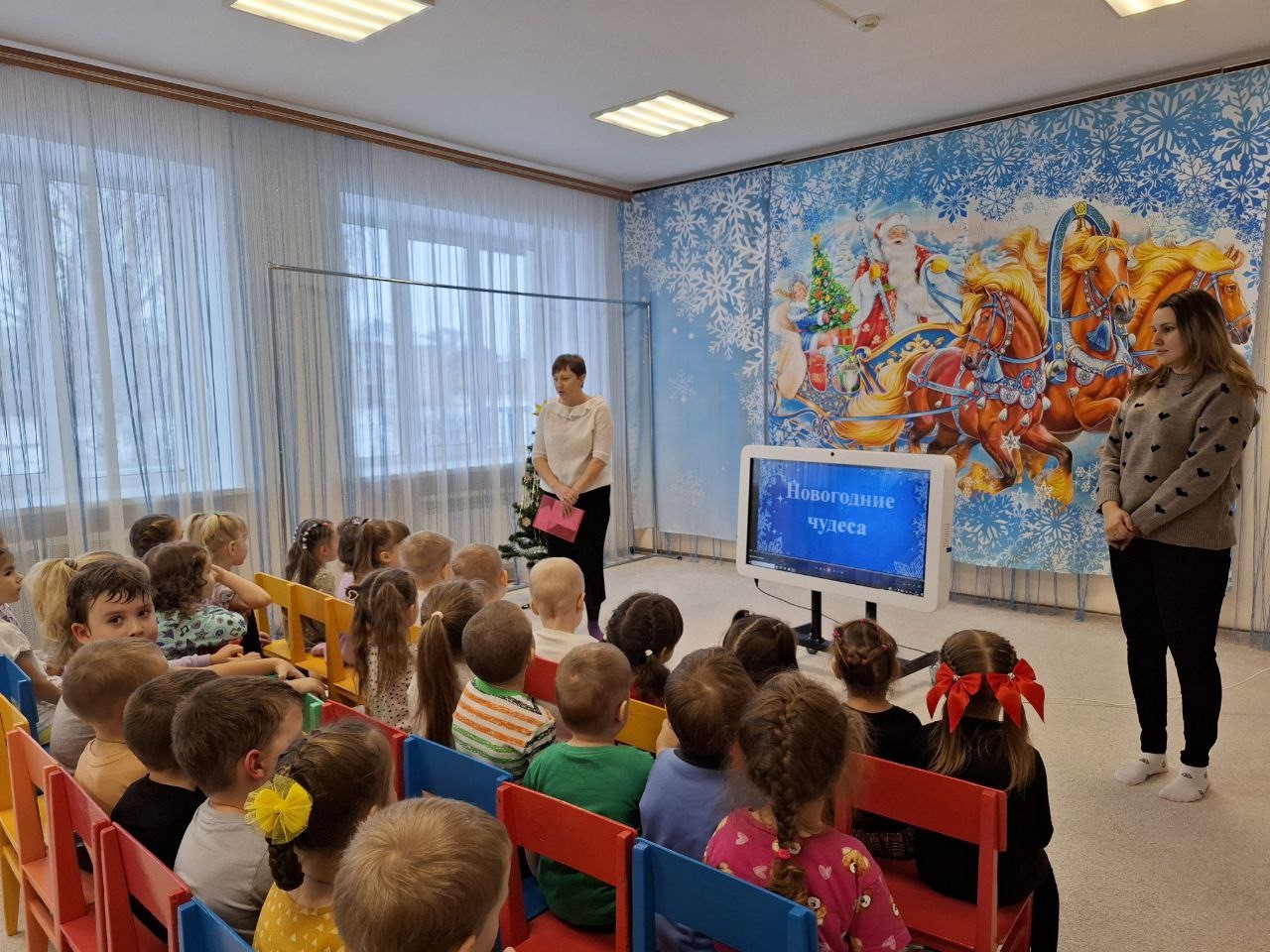 А чтобы вдохновить детей – посмотрели с ними замечательных фильм «Новогодние чудеса», в котором снимались обычные люди, а героиня — такая же маленькая девочка как и наши воспитанники.