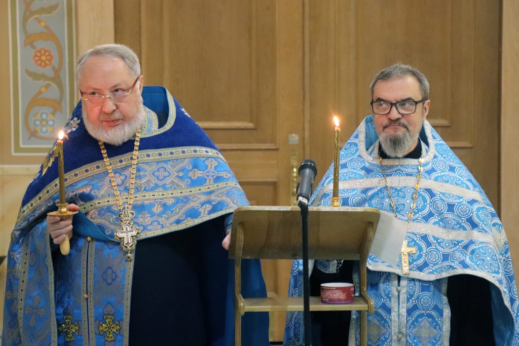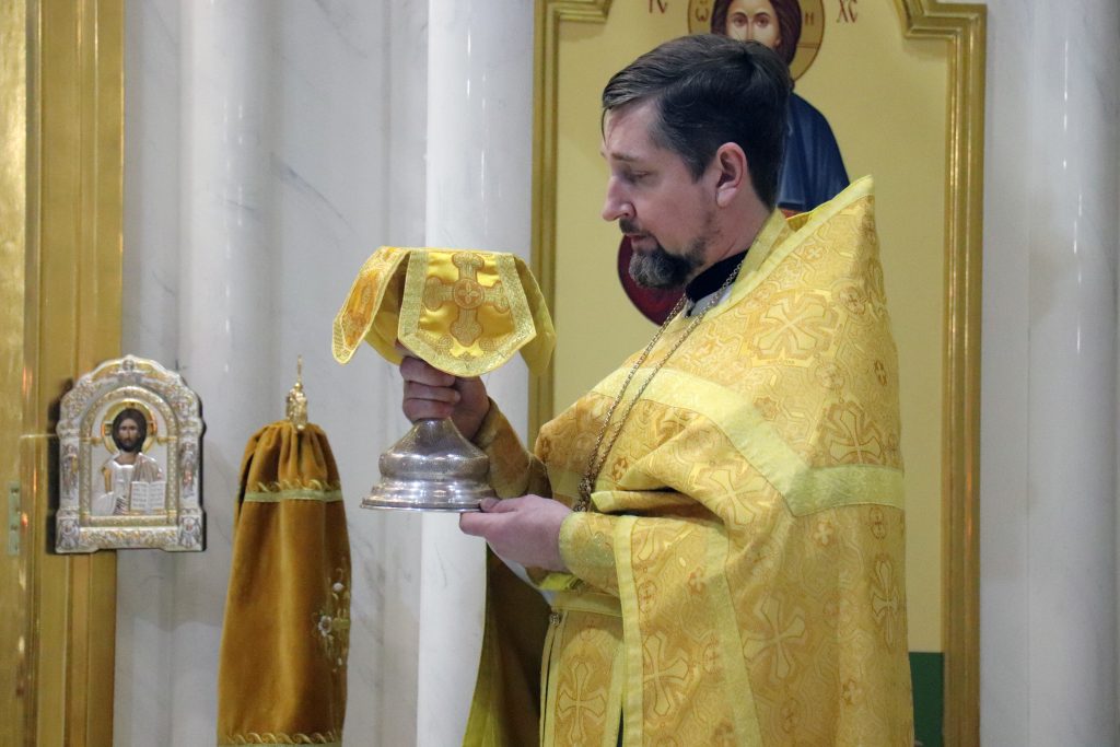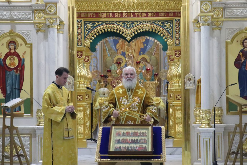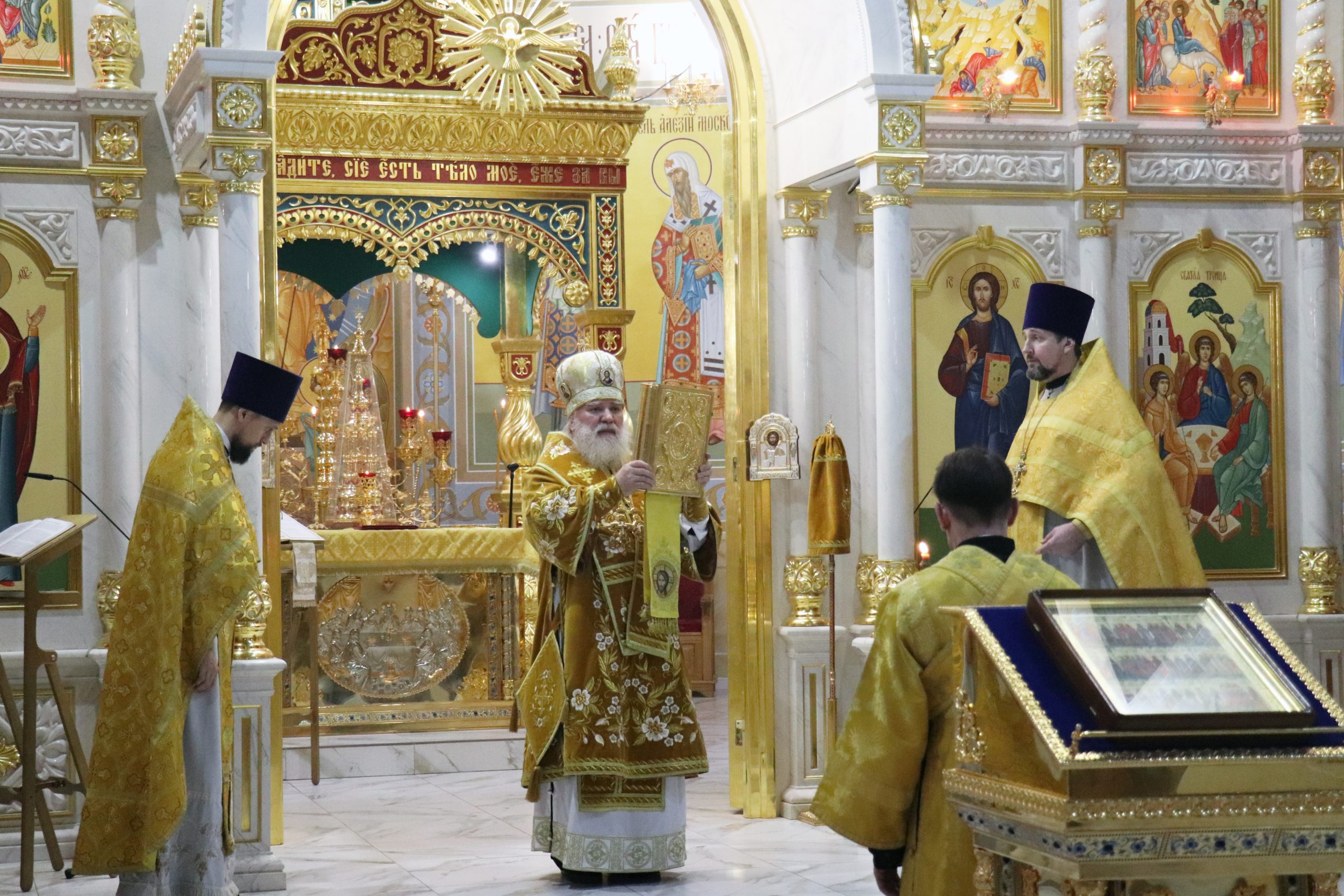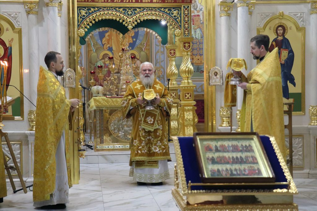 Его Преосвященству сослужили: иерей Михаил Цапяк и иерей Вадим Зотов.