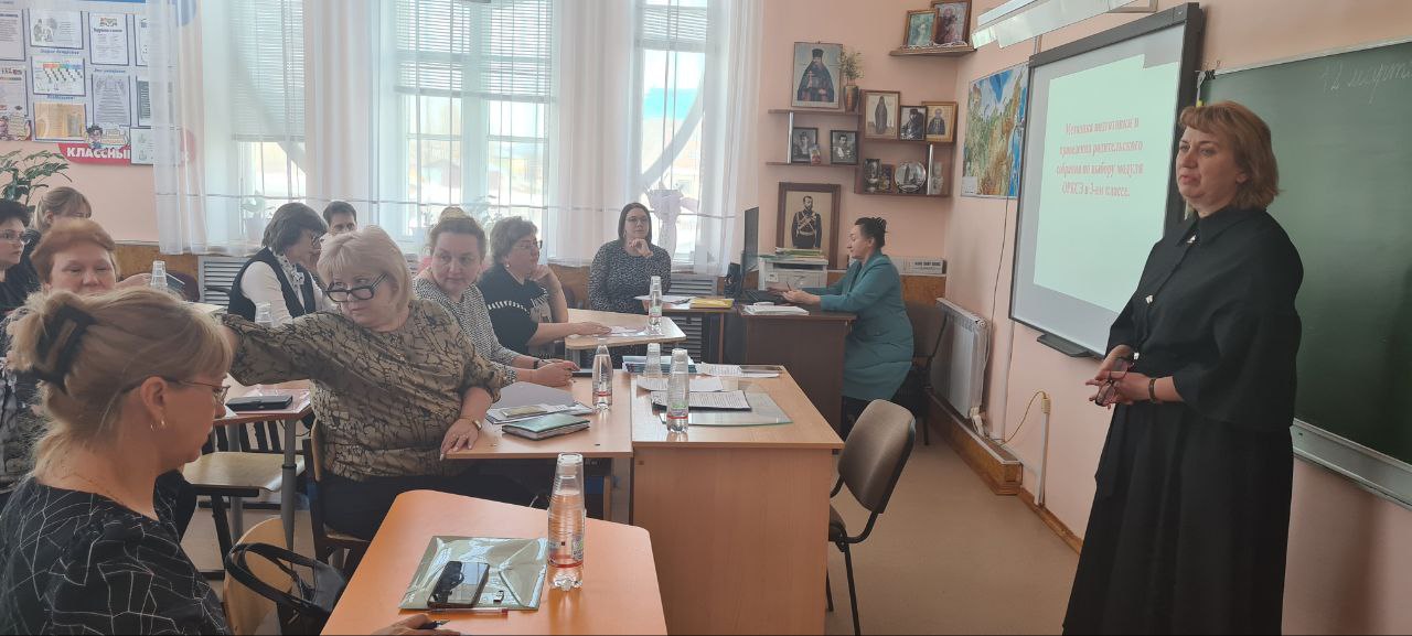 Бузулук. 12 марта 2026 года в Иоанно-Богословской Православной школе г. Бузулука состоялось заседание городского методического объединения учителей ОРКСЭ, на которое были приглашены учителя муниципальных школ, работающие в третьих классах.