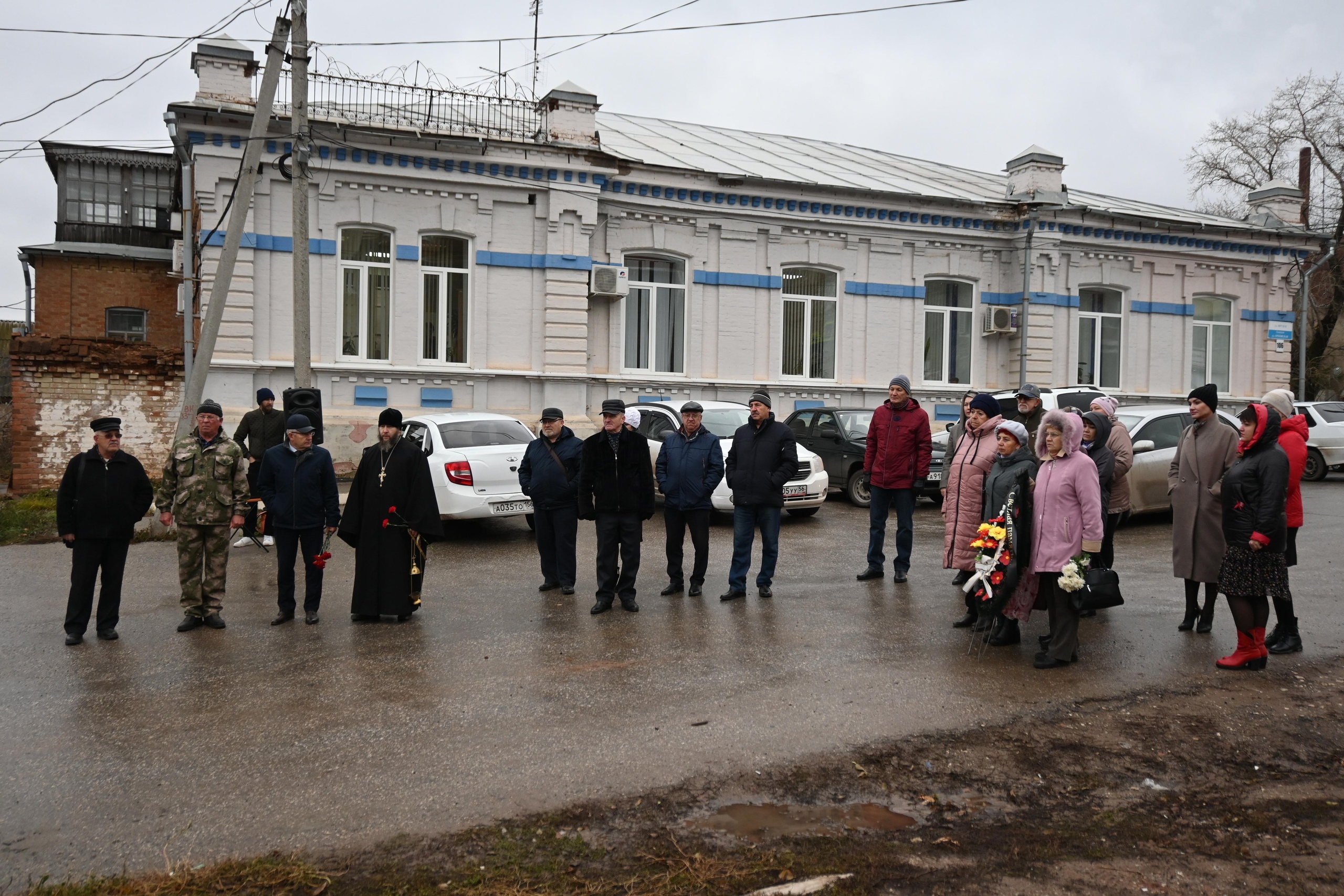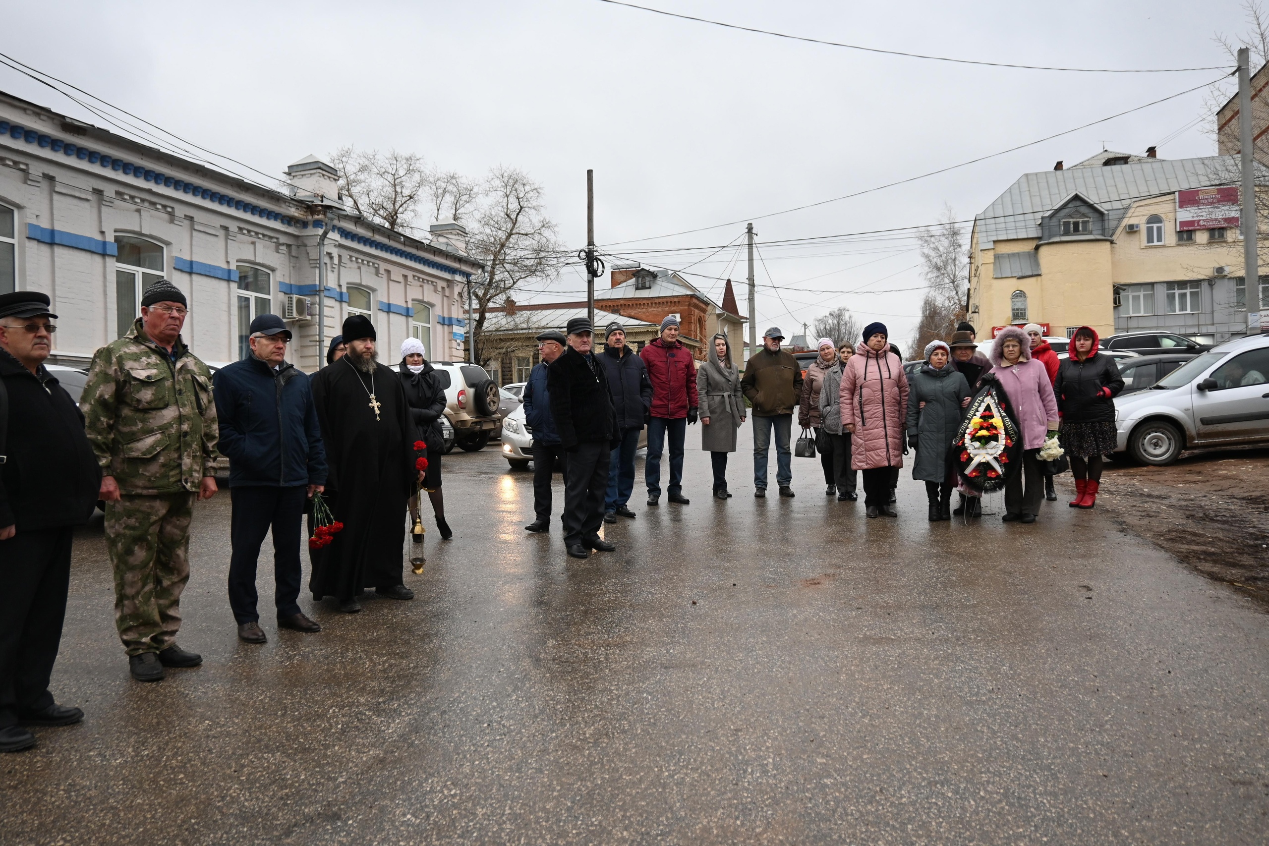 Иерей Максим Заико отслужил панихиду о безвинно пострадавших, после чего присутствующие возложили к памятному знаку цветы.