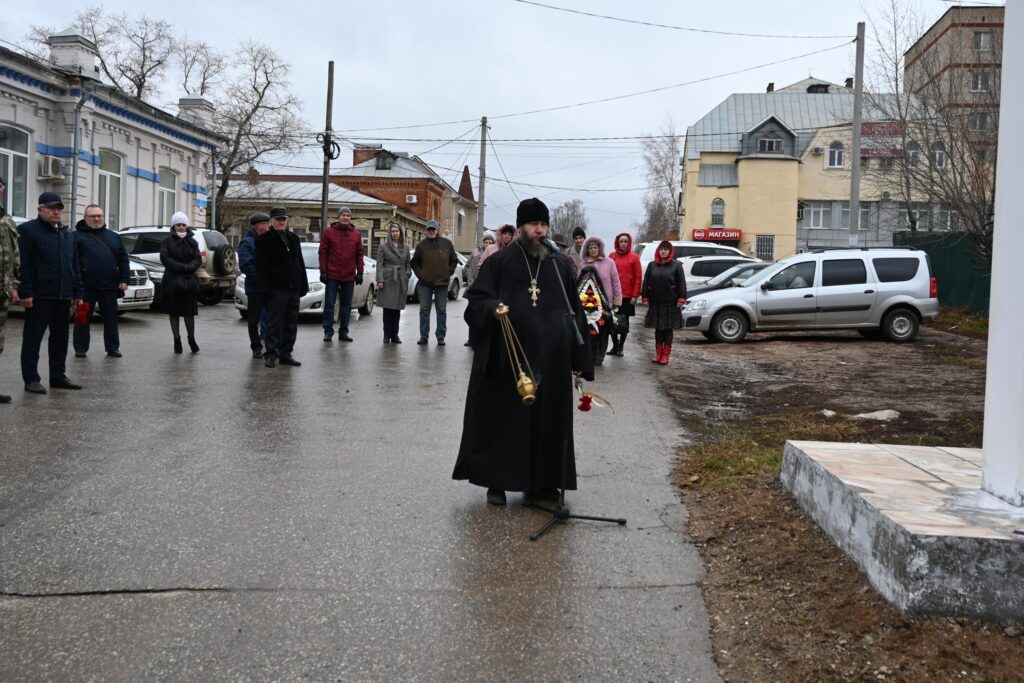 Бугуруслан. 30 октября 2023 года настоятель Свято-Троицкого собора в г. Бугуруслан иерей Максим Заико принял участие в мероприятии у памятного знака «Жертвам политических репрессий».