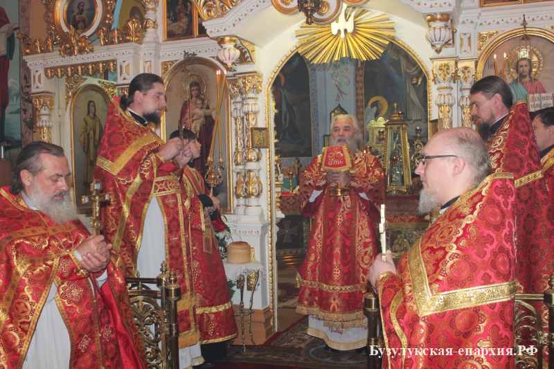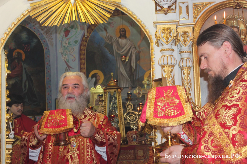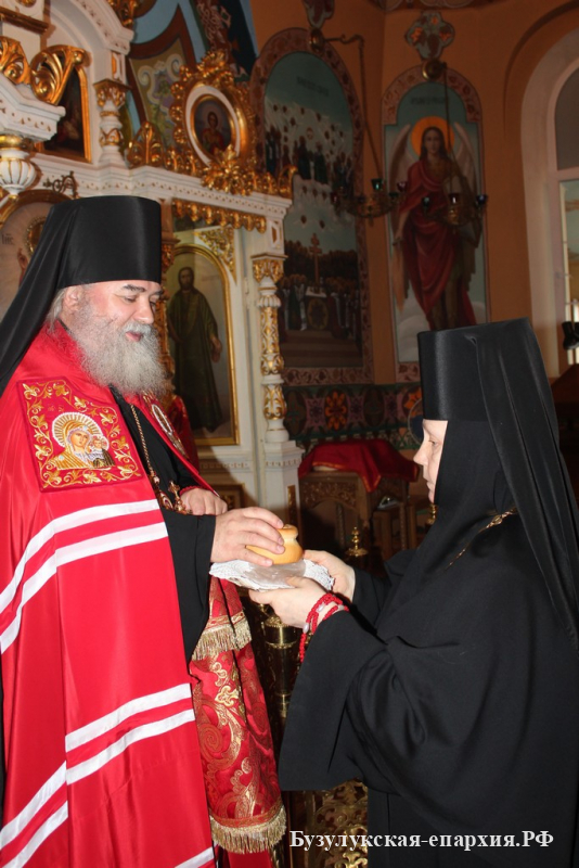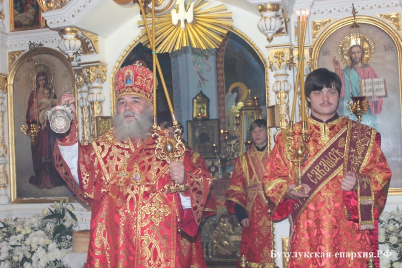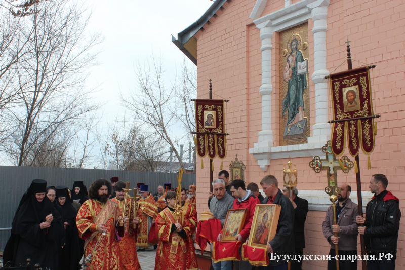 Епископ Алексий, 16 апреля 2015 года, Литургия в Свято-Тихвинском Богородицком женском монастыре г. Бузулука