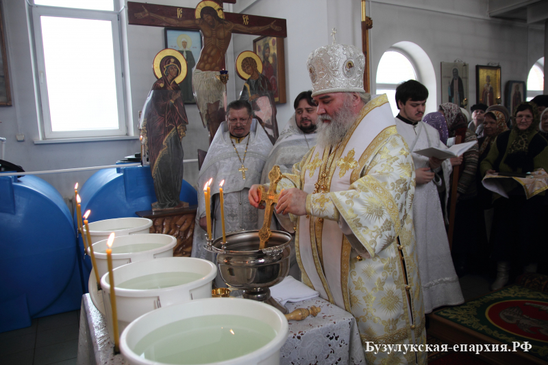 Епископ Алексий, Божественная литургия и Великое освящение воды в Преображенском храме Свято-Троицкого кафедрального собора, 18 января 2018 года, Бузулук