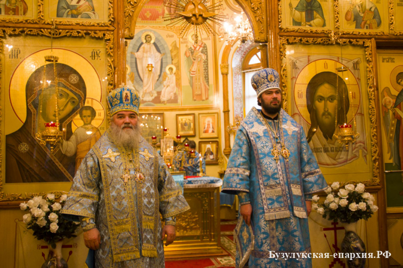 Епископ Алексий и епископ Мефодий, литургия в храме Святой Троицы г. Лениногорска Республики Татарстан, 22 ноября 2014 г