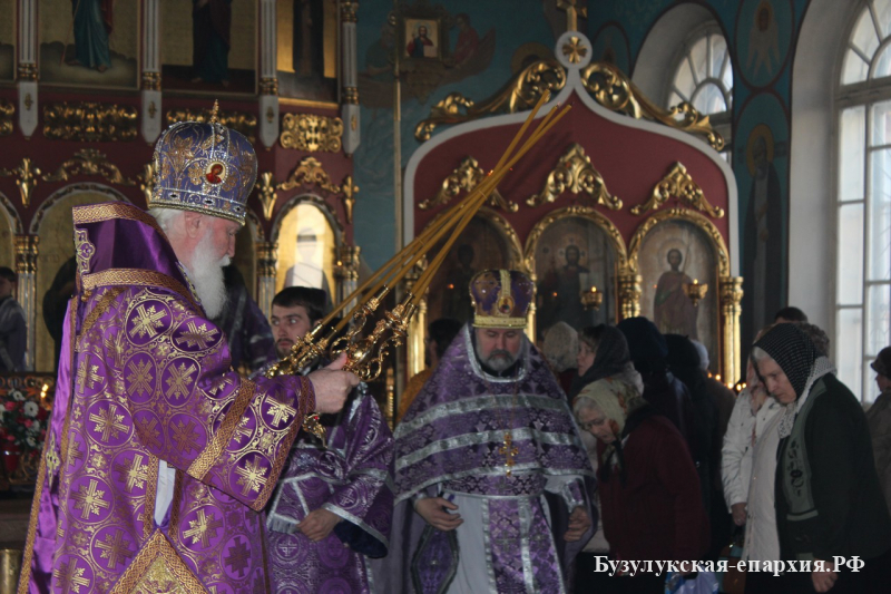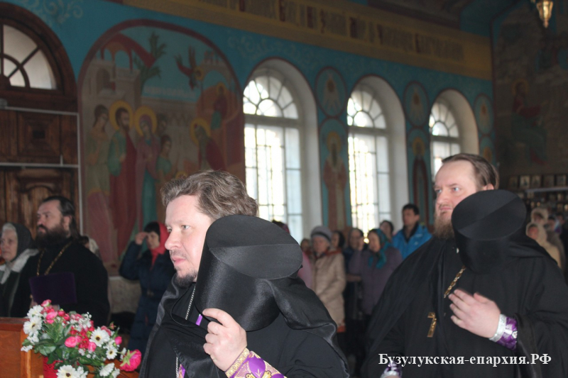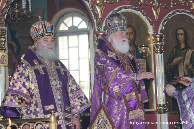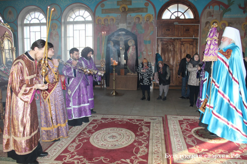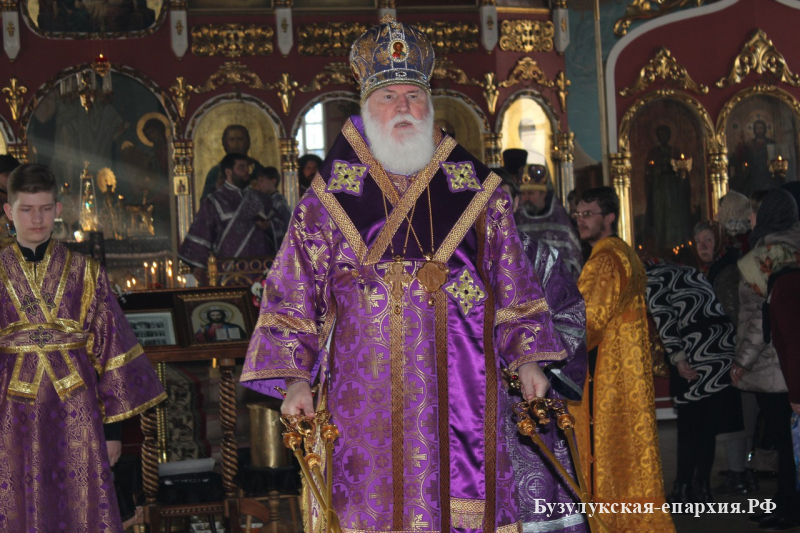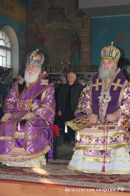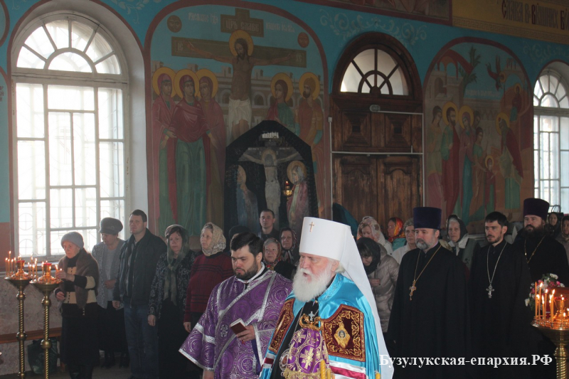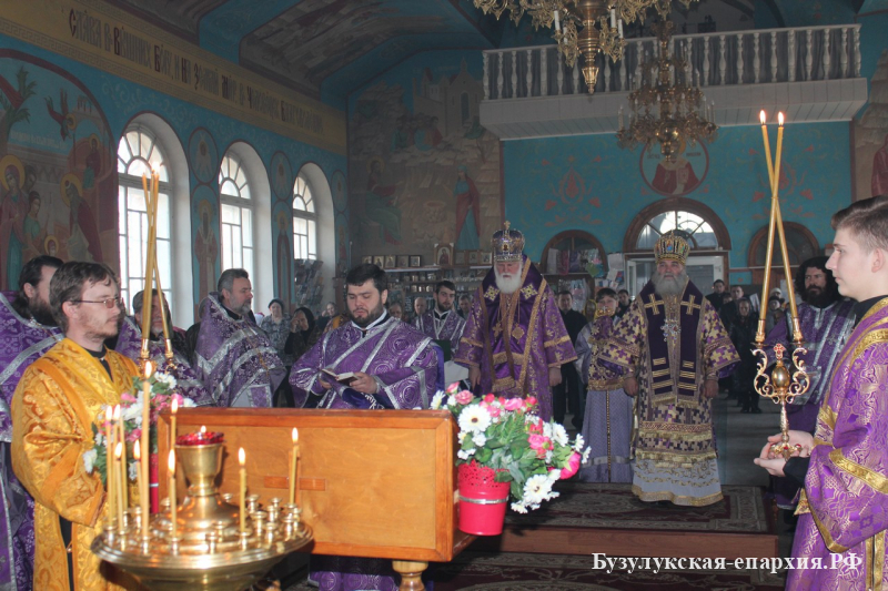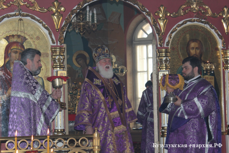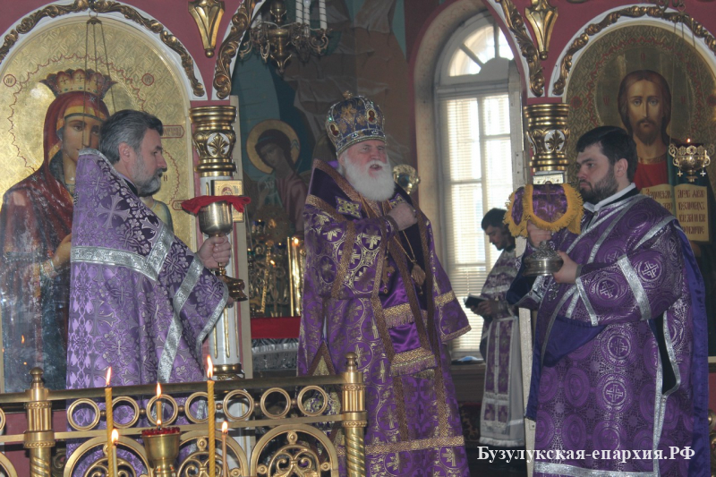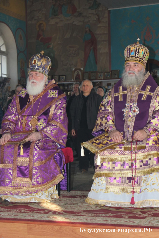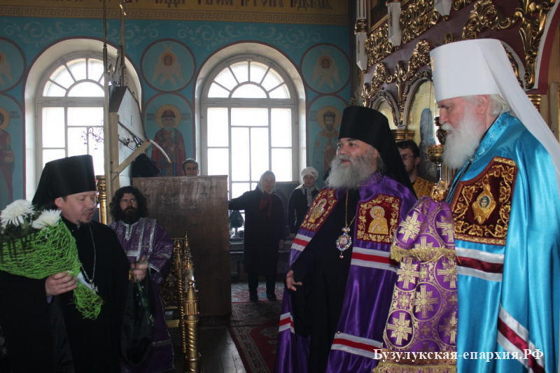 Митрополит Валентин и епископ Алексий, 30 марта 2015 года, Литургия Преждеосвященных Даров и молебен в Никольском соборе г. Бузулука