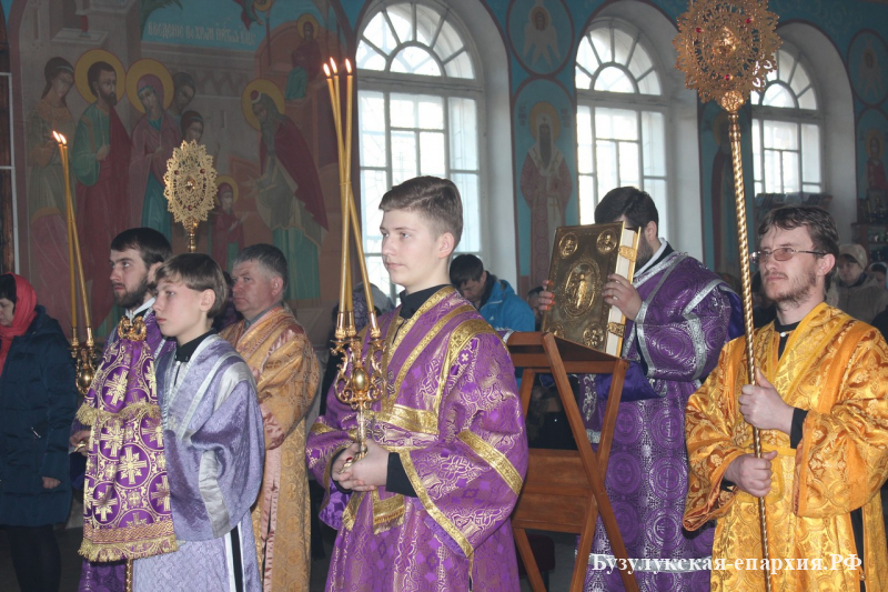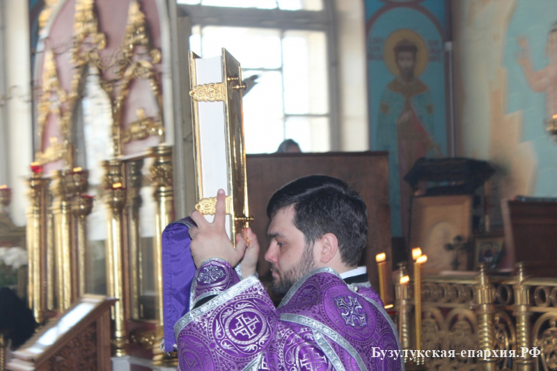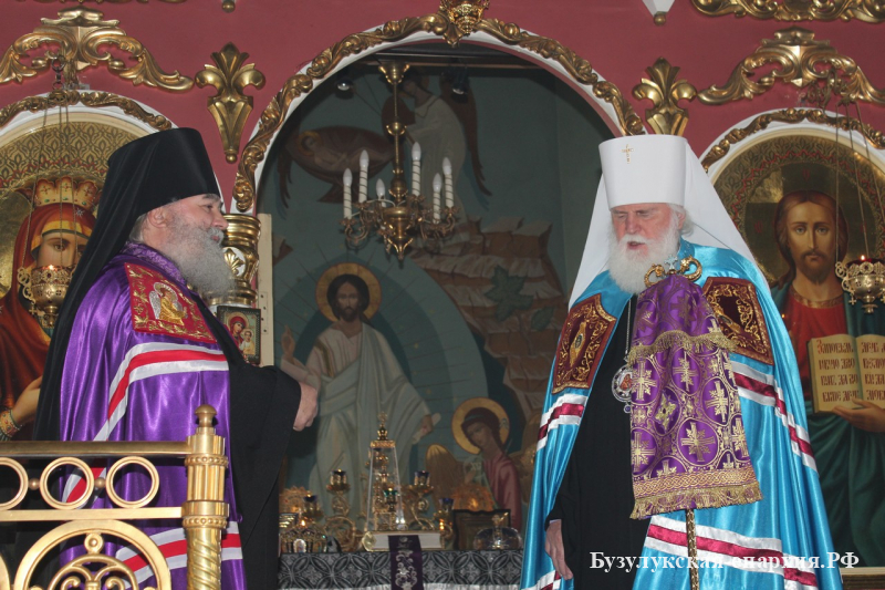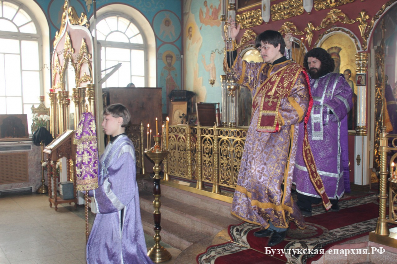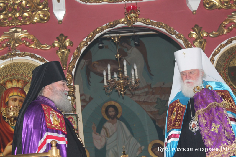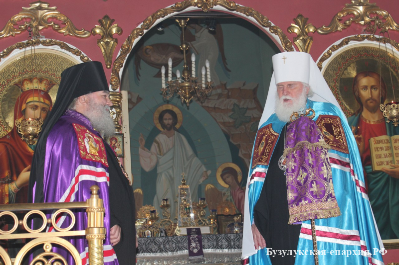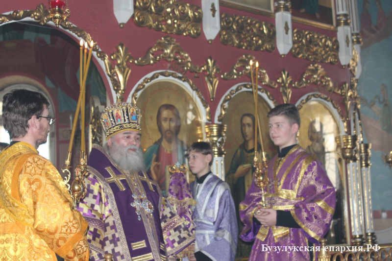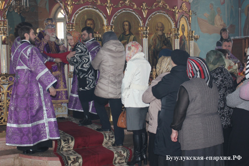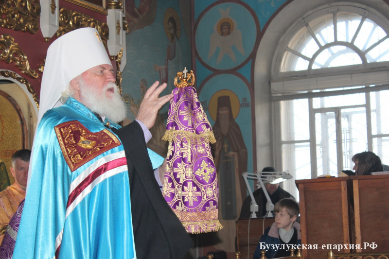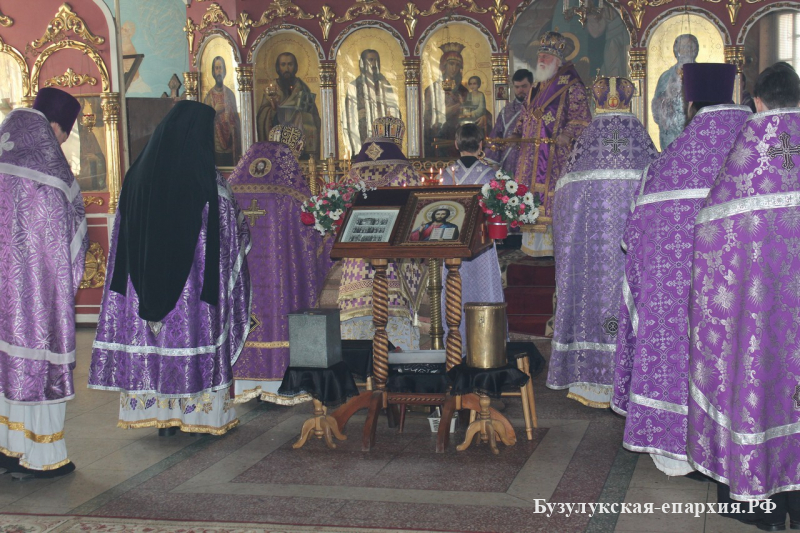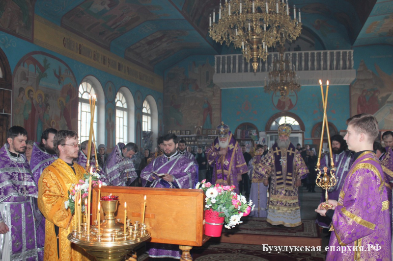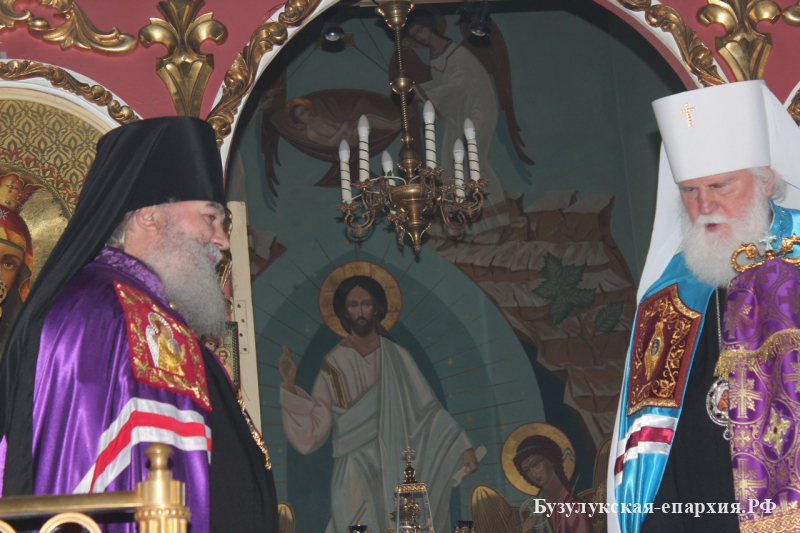 Митрополит Валентин и епископ Алексий, 30 марта 2015 года, Литургия Преждеосвященных Даров и молебен в Никольском соборе г. Бузулука