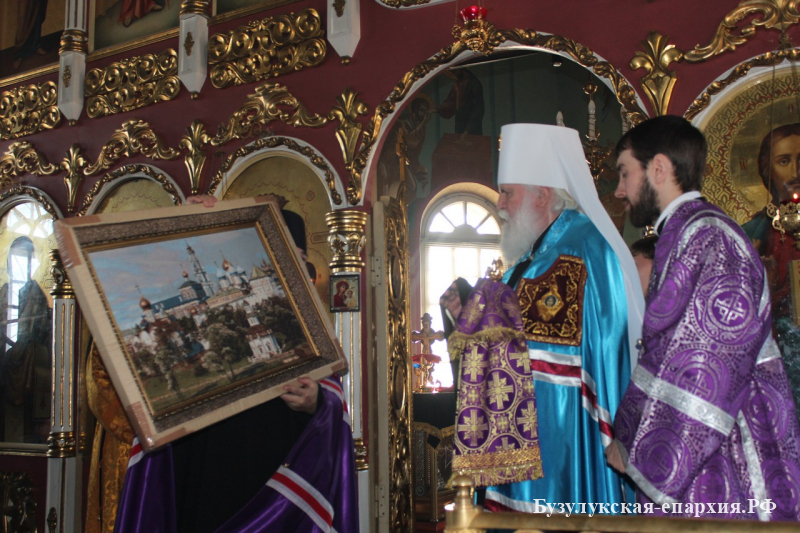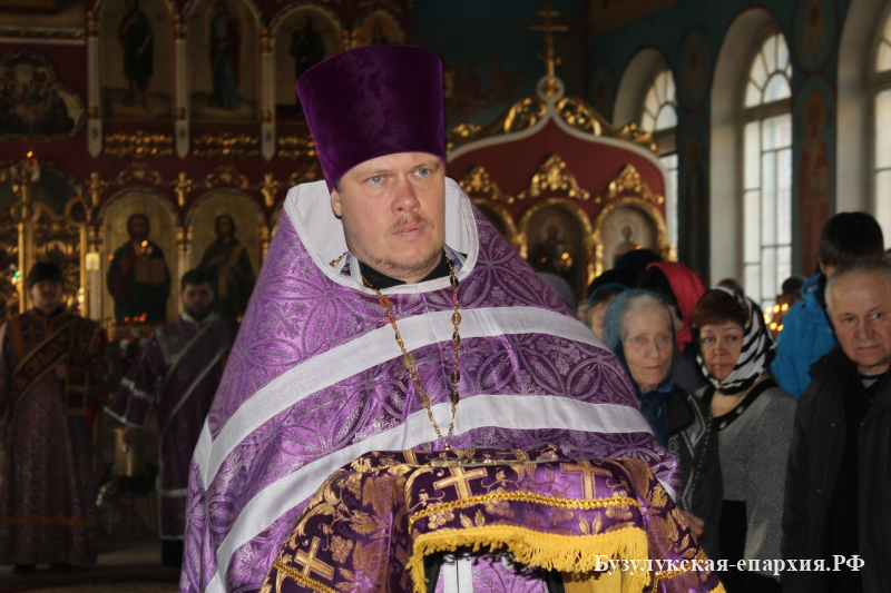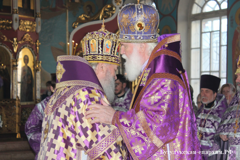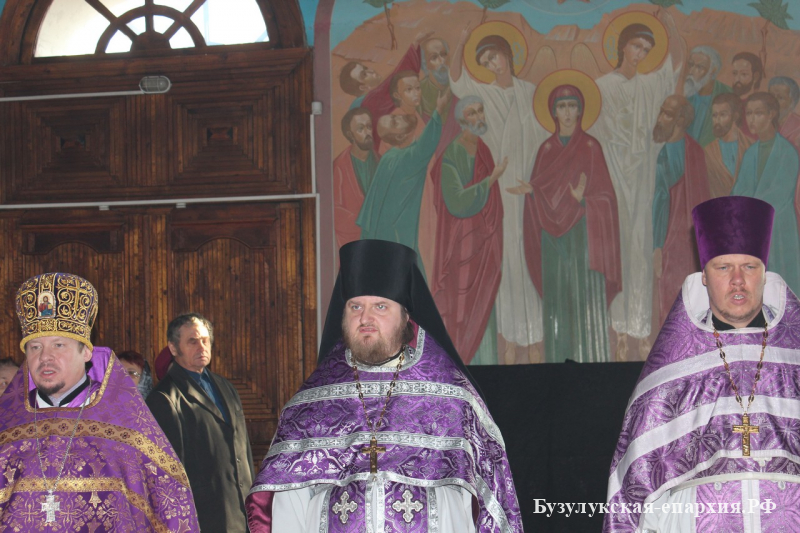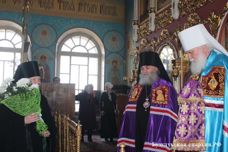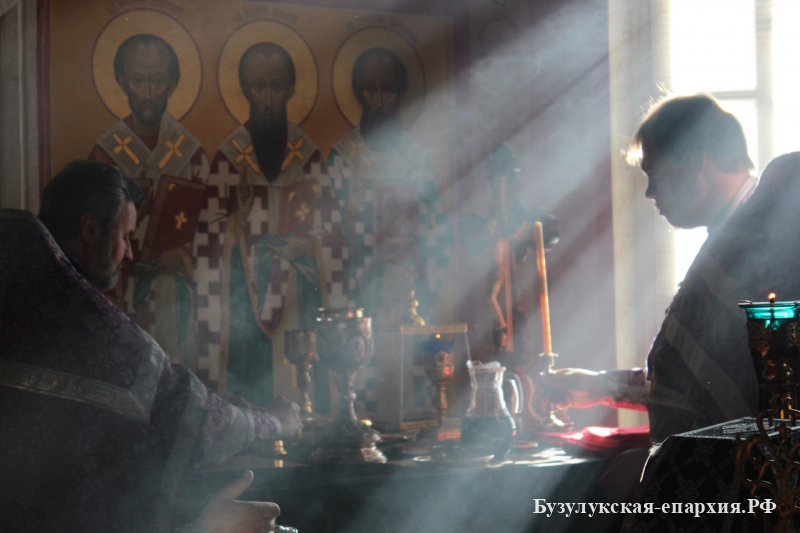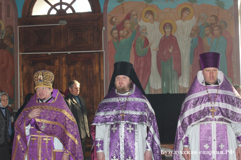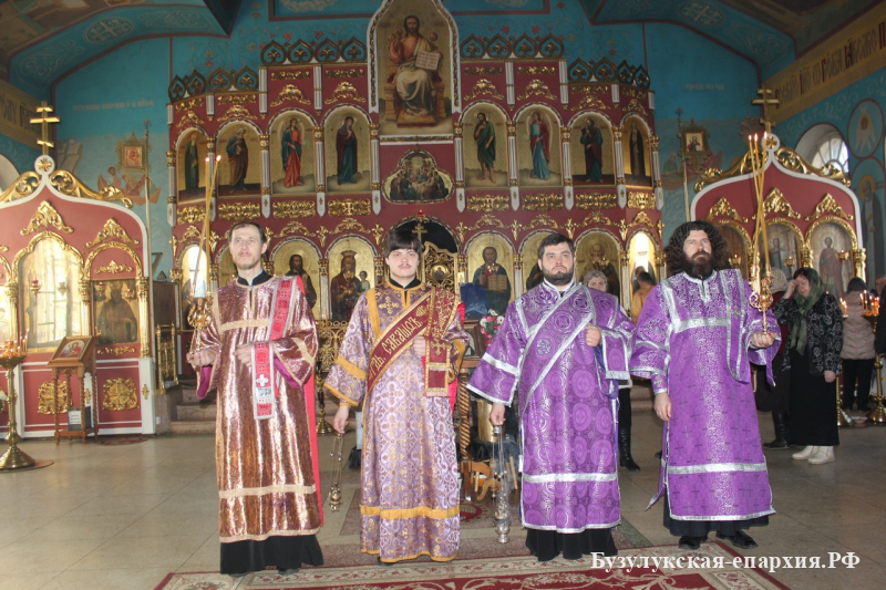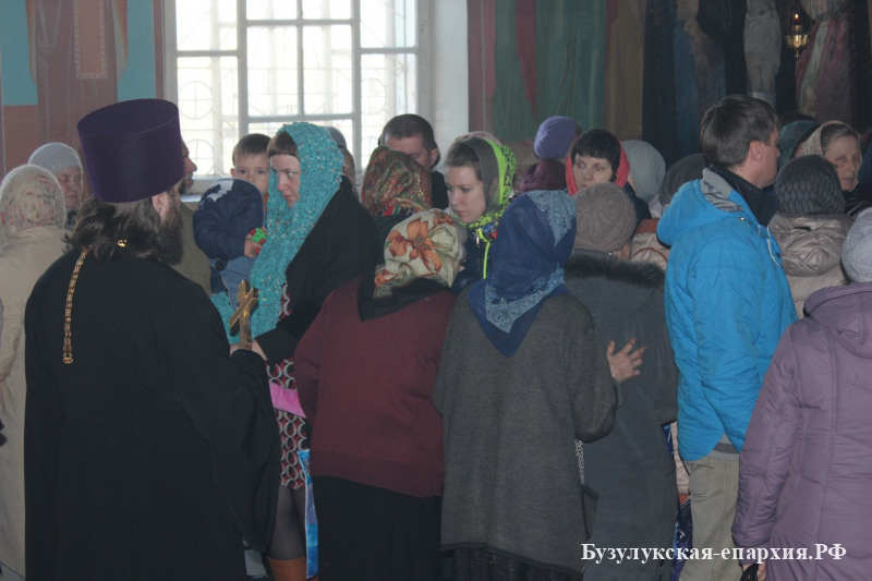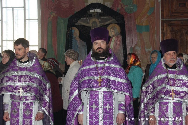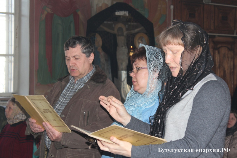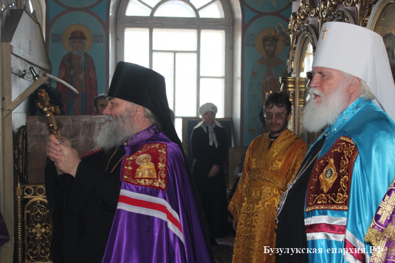 Митрополит Валентин и епископ Алексий, 30 марта 2015 года, Литургия Преждеосвященных Даров и молебен в Никольском соборе г. Бузулука